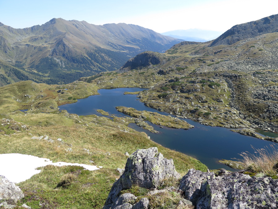 Bereits am Gipfel kam mir die Senke rechts vom Kocna vertraut vor, und ich versuchte zusammenzupuzzlen, woher. Steiner Alpen und Karawanken hatte ich richtig vermutet, nur die zahme Form der östlichen Karawanken irritierte mich zu sehr, um komplett sicher zu sein.