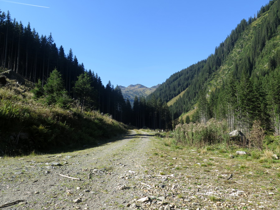 Der Forstweg im Talgrund endet im Schwarzaboden, am Talschluss tummelten sich zahlreiche röhrende Hirsche.