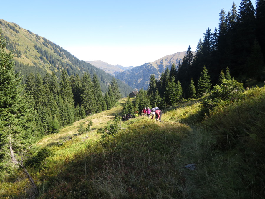 Gegen fünf Uhr erreichen wir die Schwarzaalm. Nach kurzer Rest bolzen wir das Tal hinab zum Ausgangspunkt.