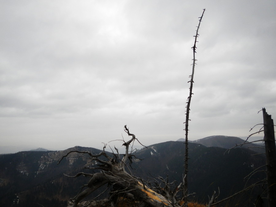 Bild 6: Über einen weiteren älteren Windwurf geht der erste Blick zum heute verdeckten Schneeberg.
