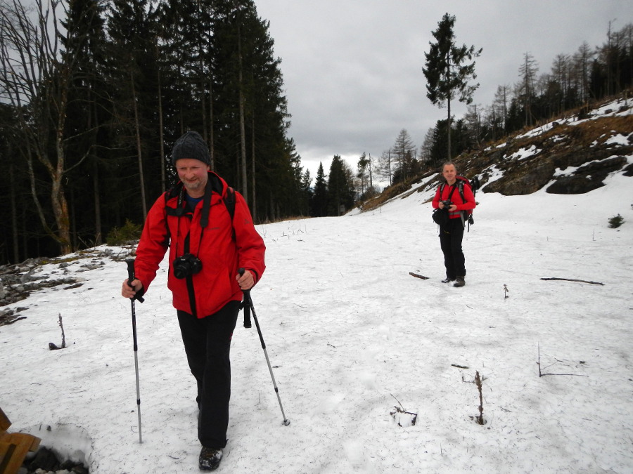 Ein schwaches Italientief brachte vor allem dem Westen und Südwesten Österreichs Neuschnee, am Alpenostrand sollte es erst am Nachmittag beginne zu regnen, wobei vorlaufend Südföhn überwog und teils zweistellige Werte bis ins südliche Steinfeld brachte. Auf der Rax sank die Temperatur von 7 Grad am Vortag auf 0 Grad ab, wir starteten bei 6°C am Ausgang des Luckengrabens, gehen aber diesen nicht weiter, sondern gleich rechts den Südostkamm hinauf: