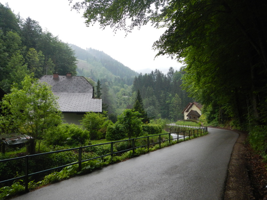 Bild 1: Bei der Zufahrtsstraße zur Klamm fängt es stärker zu regnen an.