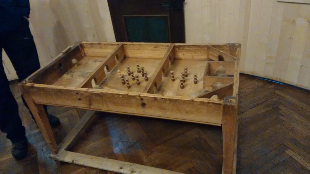 Man treibt den Kreisel mit einem Faden an, den man um den Kreisel wickelt, durch einen Spalt an der Wand steckt und durchzieht. Für jede umgeworfene Figur gibt es Punkte, ebenso für jedes durchgerollte Türchen.
