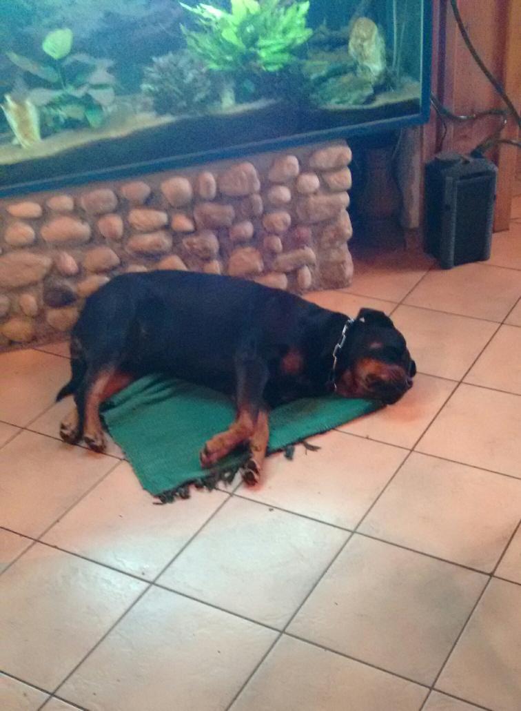 Bild 24: Müder Rottweiler im Fischrestaurant