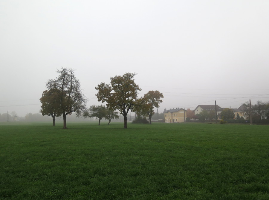 Bild 1: Als ich vom Bahnhof Ternberg weggehe, liegt das Ennstal im Nebel.