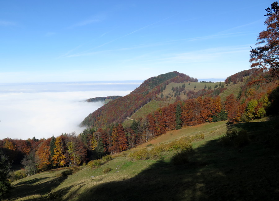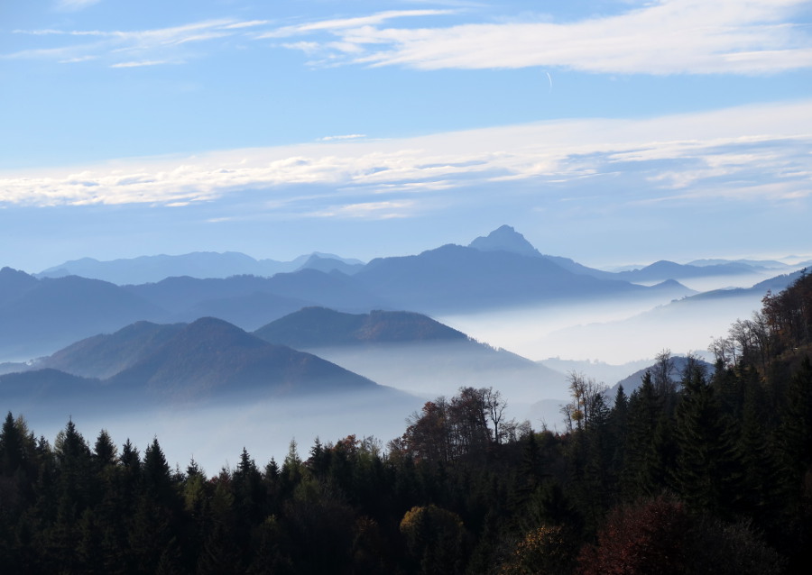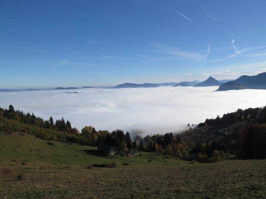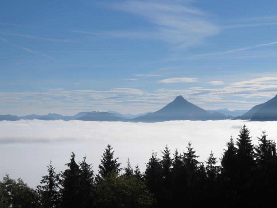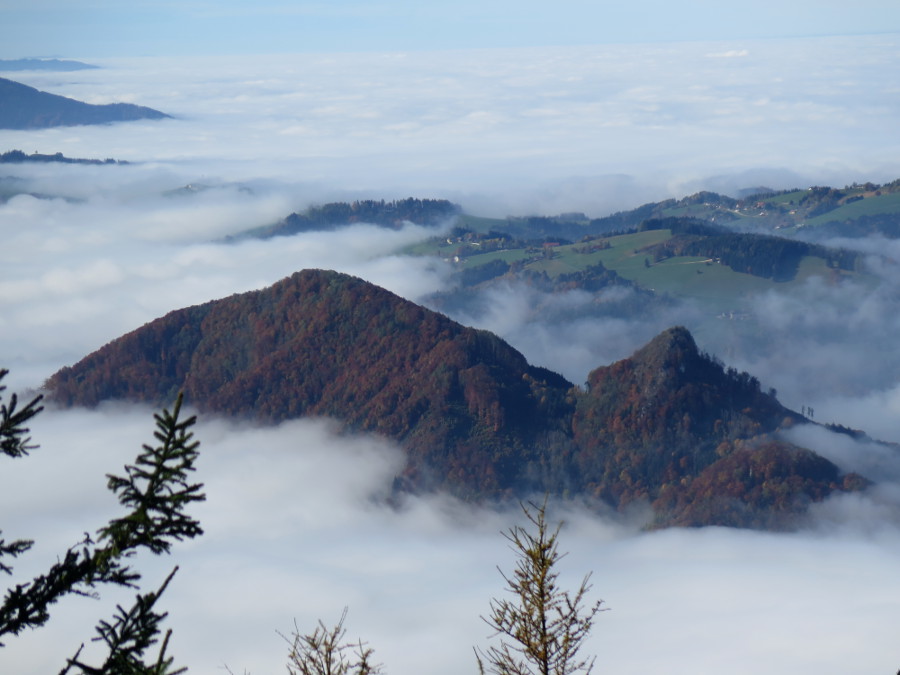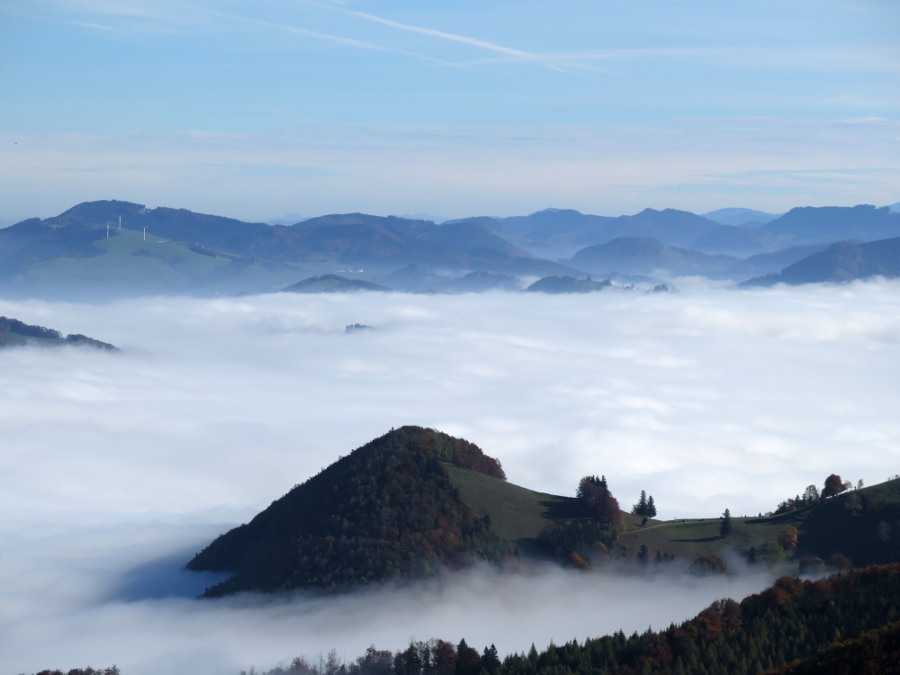Bild 8: Nebelgrenze recht genau bei 800 m Höhe (Brandkogel 825m, Sattel 792m).
