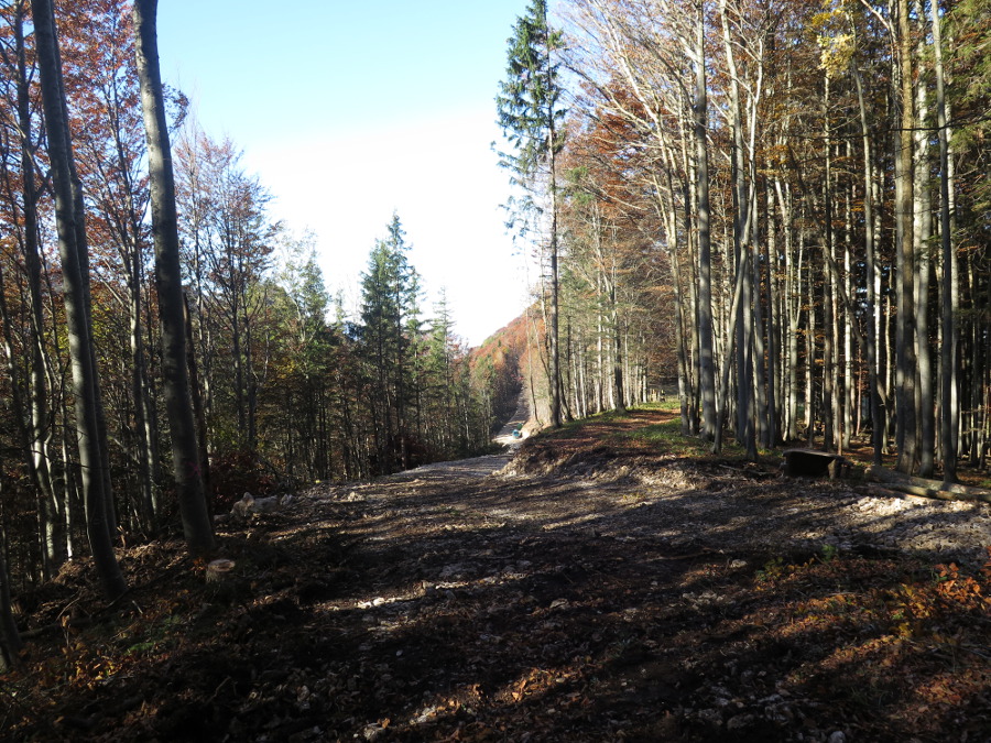 Bild 14: Dann stoße ich auf eine hässliche neue Forststraße, die offenbar der Grund für die Waldarbeiten ist.