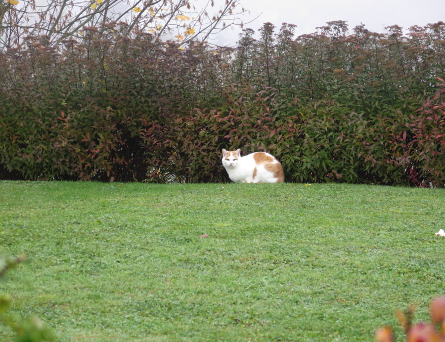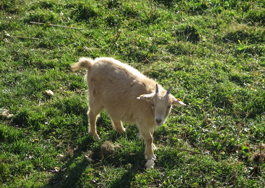 Das war so nicht geplant. Zwar ist in meiner Karte ein punktierter Steig direkt zum Gscheid eingezeichnet, aber Trittspuren sehe ich oben nirgends. Also gehe ich den Kamm hinab (Steigspuren), die immer an einem Stacheldrahtzaun führen, bis man an die Stelle kommt, wo sich der 04er und 09er begegnen. 10 min bis zum Kruckenbrettl steht auf der Wegtafel, na, den lass ich mir doch nicht entgehen! Auf der angrenzenden Wiese sehe ich erneut eine Katze, die sich leider nicht fotografieren lassen sollte.