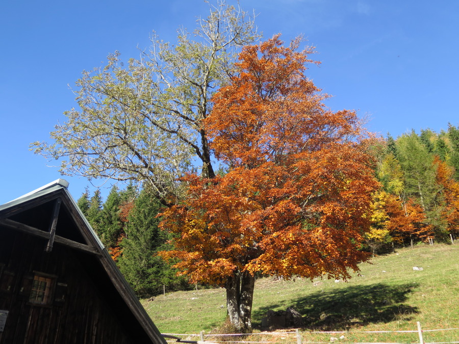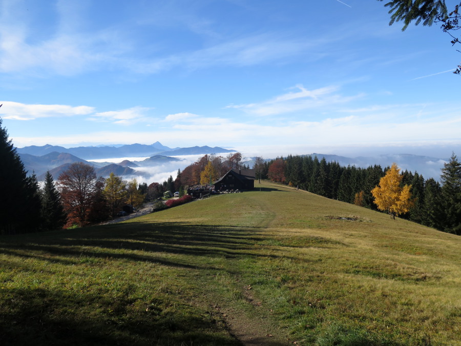Bild 27: Blick zur Grünburger Hütte (1080m), die für einen Wochentag gut besucht war.