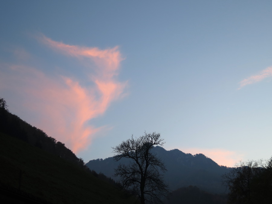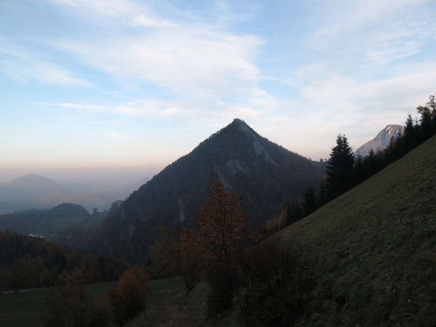 Rechts Hohe Dirn (1134m), Schwarzkogel (1075m) und Schieferstein (1206m).