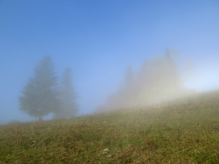 Bild 6: Im Sattel zwischen Herndleck und Brandkogel durchstoße ich den Nebel.
