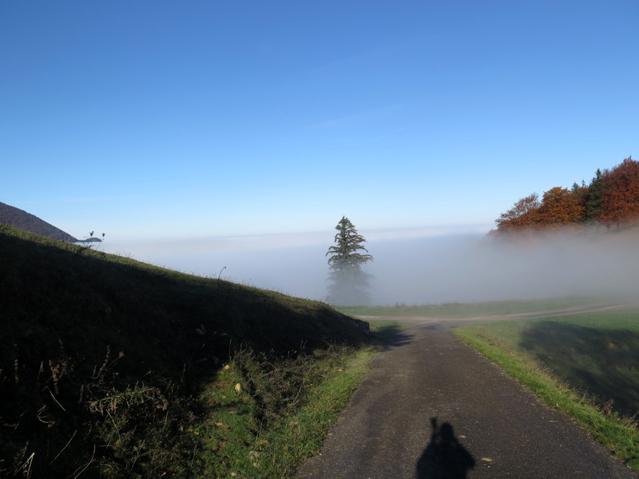 Unterhalb gibt es jedoch schöne Ausblicke in den nebelgefüllten Bäckengraben.