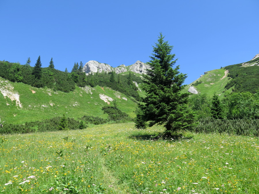 Bild 6: Rechts die Lachalpe (1590m), links die ausgedehnte Veitschalpe