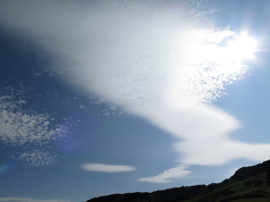 Föhnwolken, hervorgerufen durch den starken Nordwestwind, durchsichtig, schichtförmig.