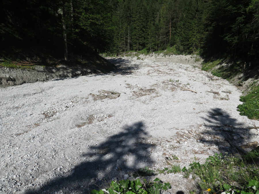 Der Weg verläuft zeitweise im Bachbett daneben, die Querungen sind ausreichend markiert.
