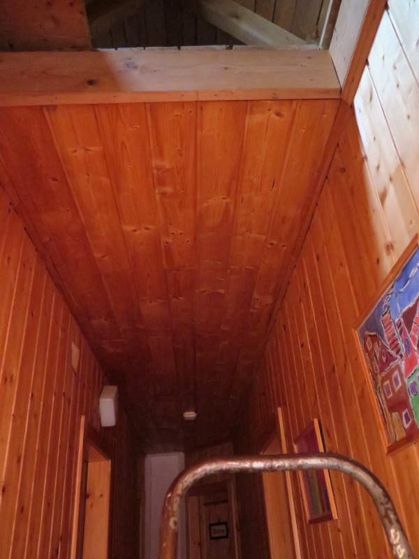 Kurz zum Thema Schlafgelegenheit. Als ich wenige Tage davor anrief, waren Lager und Zimmer bereits voll, aber im Dachboden sei eine Notschlafstelle eingerichtet. Etwas abenteuerlich über eine steile Leiter und nur für Erwachsene, sagte sie noch am Telefon. Gut, ich dachte, das wird eine senkrechte Holzleiter sein.