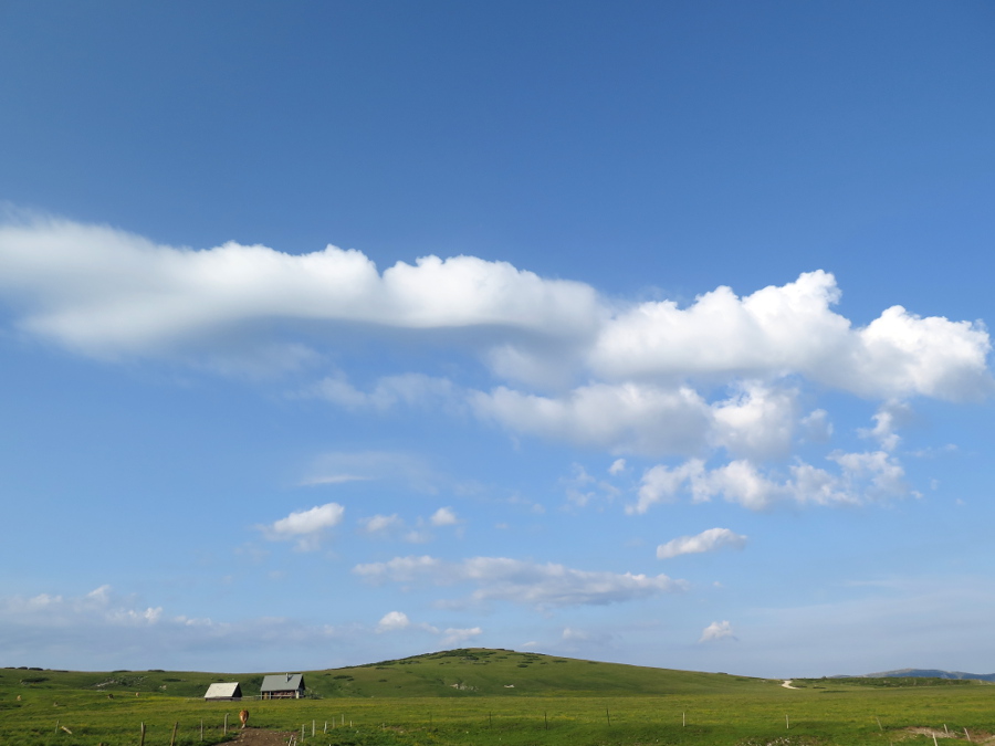 In der Höhe jetzt Altocumulusbänke, teils mit ersten zinnenförmigen Ansätzen (castellanus), gemeinhin als Gewittervorbote bekannt. Direkt über der Hochweichsel sieht man auch deutlich die Fallstreifen der Eiskristalle.