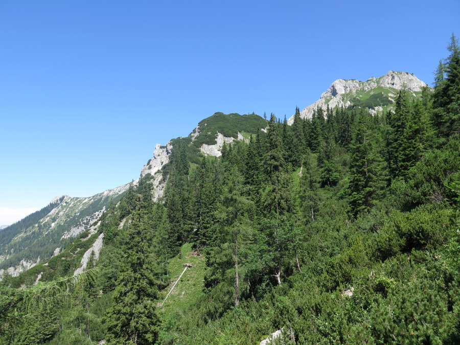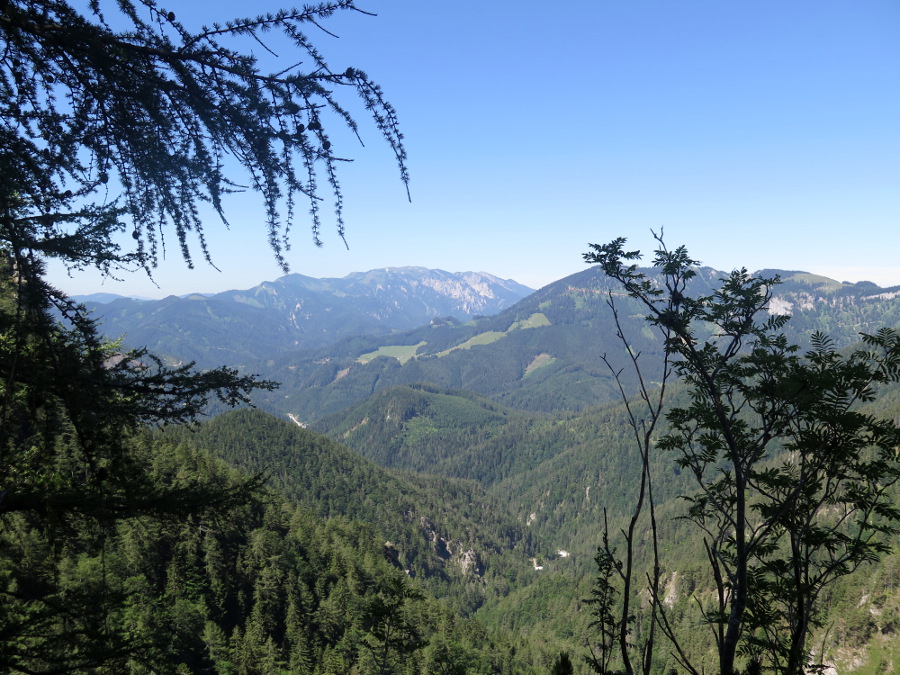 Rechts Kleiner Proles (1579m) und Großer Proles (1565m), links Föllbaumkogel (1494m), Kl. Königskogel (1552m) und Großer Königskogel (1574m), im Hintergrund Dürrenstein.