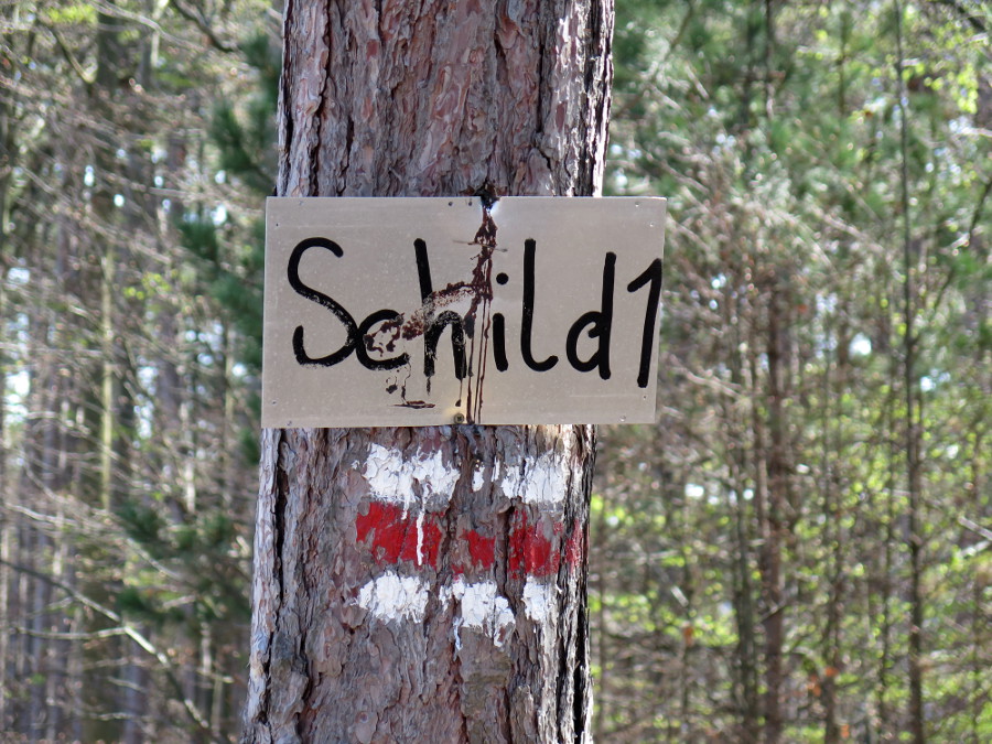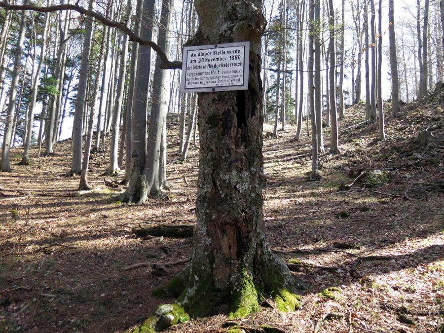 Bild 14: So stoße ich unterhalb vom Gipfel nahe eines mächtigen Felsens auf dieses Schild, das an ein unrühmliches Ereignis in Österreichs Tierweltgeschichte erinnert.