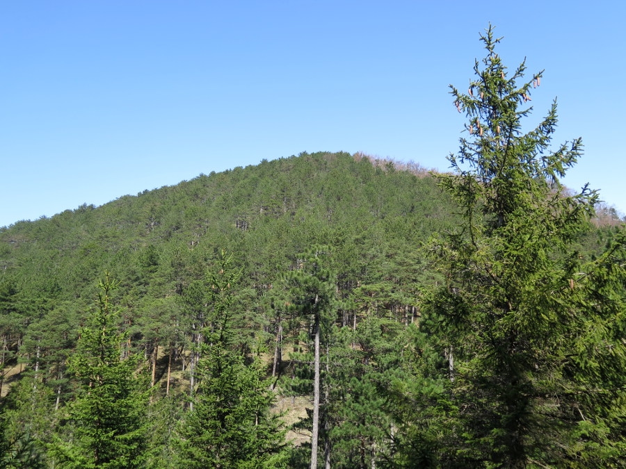 In einem älterem Bericht von 2009 von ekkhart hatte ich erstmals von einer Besteigung gelesen, und dass der südliche Anstieg gutmütiger sein soll als der nordseitige. Auch von hier sah es nach einem lichten, mäßig steilen Hang aus, der mir keine Probleme bereiten sollte.