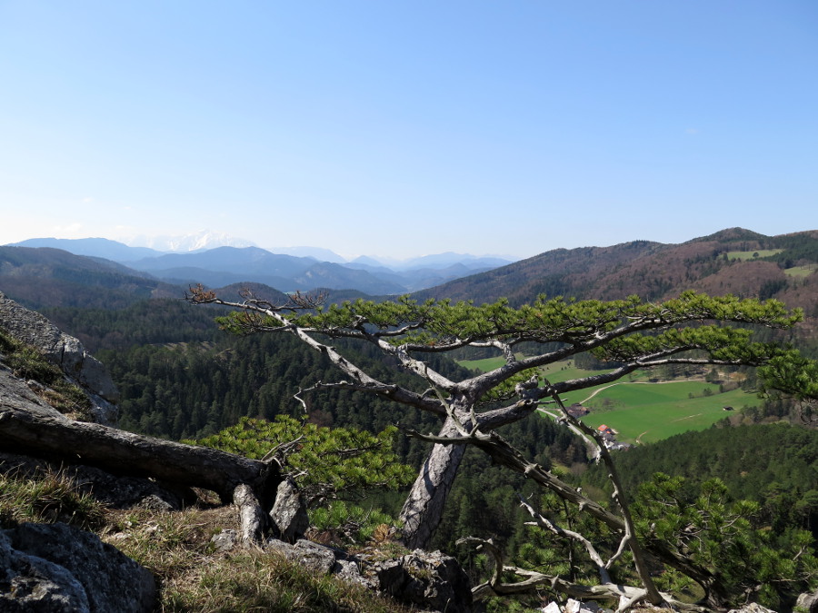 Diesem hatte ich bereits im Herbst vergangenen Jahres einen Besuch abgestattet, er bietet schöne Tiefblicke am felsig abfallenden Nordhang ins Piestingtal.