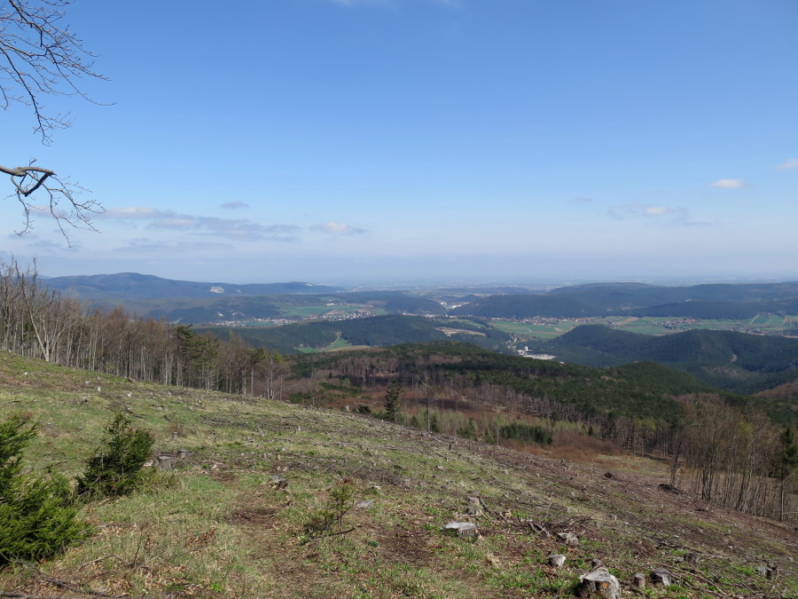 Mir bietet sich hingegen eine prächtige Aussicht nach Berndorf bis nach Bad Vöslau mit dem Harzberger Steinbruch.
