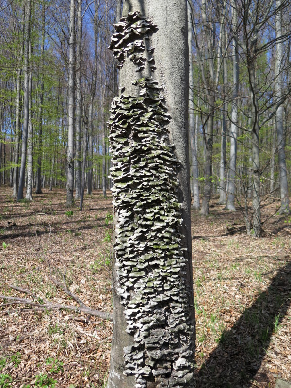 Bild 41: Kurz folge ich einem Forstweg, dann weglos Richtung Gipfel, eine Laubruachlerei.