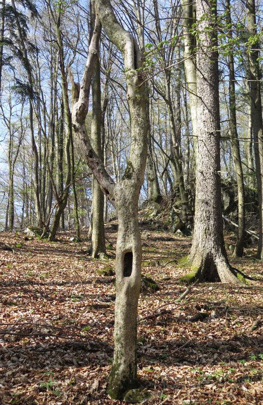 Bild 43: Mit quadratischem Astloch, im Hintergrund der Beginn des felsigen Gipfelkamms.