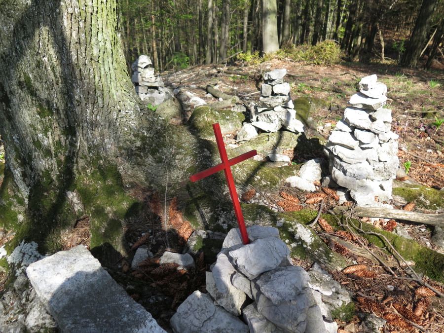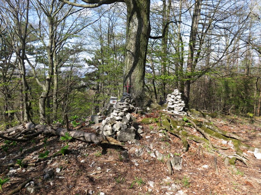 Mit mehreren Steinhaufen und mit einem der berühmten Gutensteiner Roten Kreuze gekennzeichnet, mein fünftes Rotes Kreuz nun. Ich freue mich sehr über diesen Überraschungsfund auf einem relativ niedrigen und unscheinbaren Gipfel.