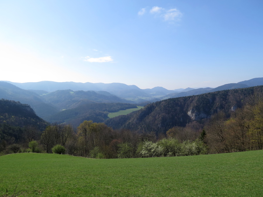Bild 6: Von einer Wiese weiter oben bietet sich der erste Blick zur Hohen Wand.