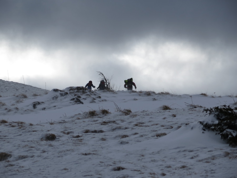 Bild 5: Die drei ältesten Teilnehmer (alle über 70) erreichen zuerst das Gipfelplateau