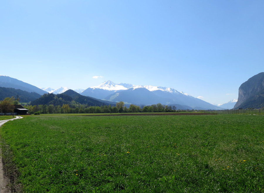 Bild 4: Oberhalb des Kerschbuchhofs, Glungezer und Patscherkofel sowie ein paar Zillertaler.
