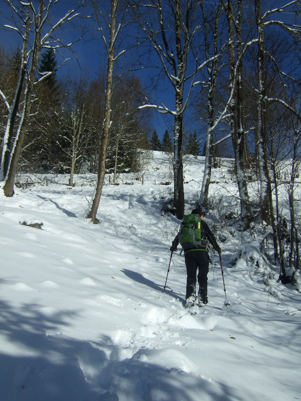 Bild 10: ... zur Sicherheit den Schitourengehern folgend an der Waldgrenze entlang und dann sanft auf den Rücken, der in Verlängerung zur Rennbauerhöhe nach Süden zieht.
