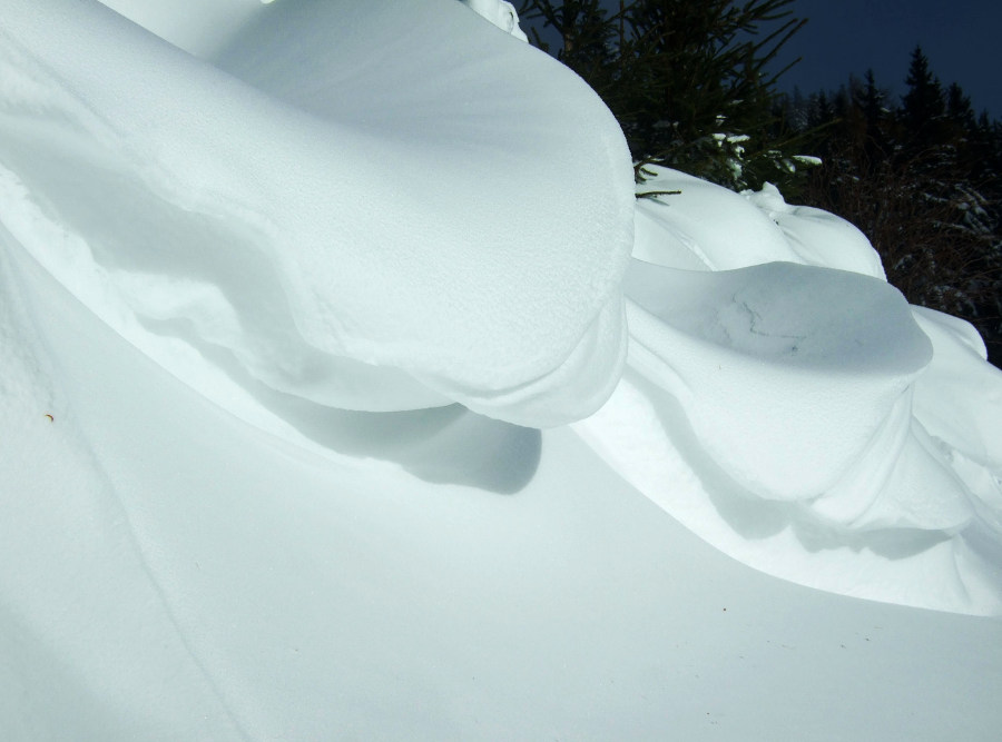 Bild 3: Sastrugi durch den starken Nordwind am Südhang.
