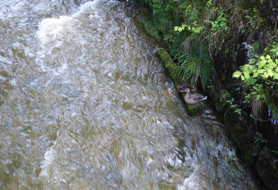Bild 1: Start in Obergnigl, wo heute zwei Enten nahe am Wasser des "Alten Bachs" gebaut sind.
