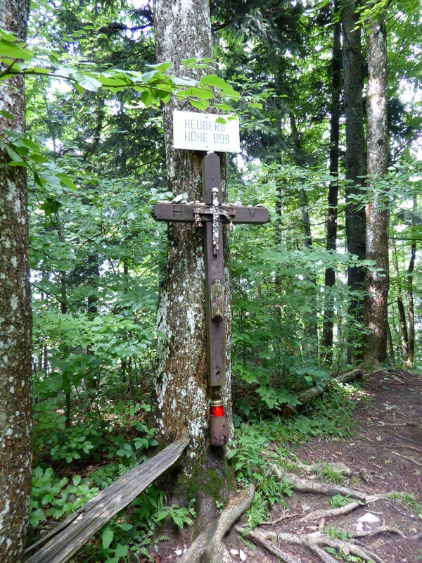 Weniger gut hat mir der Abstieg von Daxlueg über die breite Asphaltstraße gefallen. Nicht wegen dem Asphalt und an sich ist es im Wald angenehm schattig und man kann auf dem Bankett gelenkschonend hinabgehen, sondern wegen den Massen an Müll, die beidseitig in der Böschung und unmittelbar neben der Straße liegen: Dosen, Reiniger, Tetrapaks, Unmengen an Redbull-Dosen, die diverse Saubeidln entweder aus dem Auto oder vom Radl in den Wald warfen. Mir ist bewusst noch nie soviel Plastik- und Blechunrat aufgefallen, der nie verrotten wird, in einem schönen Buchenmischwald. Ich verstehe auch nicht, dass das offenbar keinen stört und da mal aufgeräumt wird. Das ist ja kein Zustand!