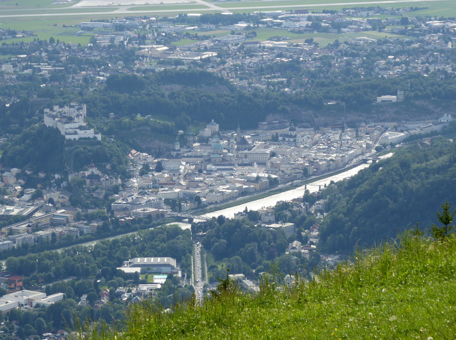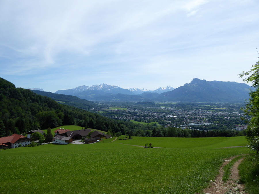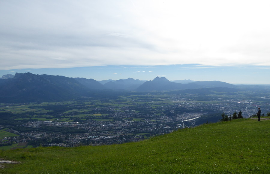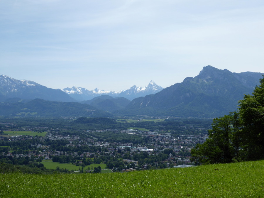 Bild 4: Tennengebirge, Göllmassiv, Watzmann und Untersberg. In der Bildmitte das Hellbrunner Bergl.
