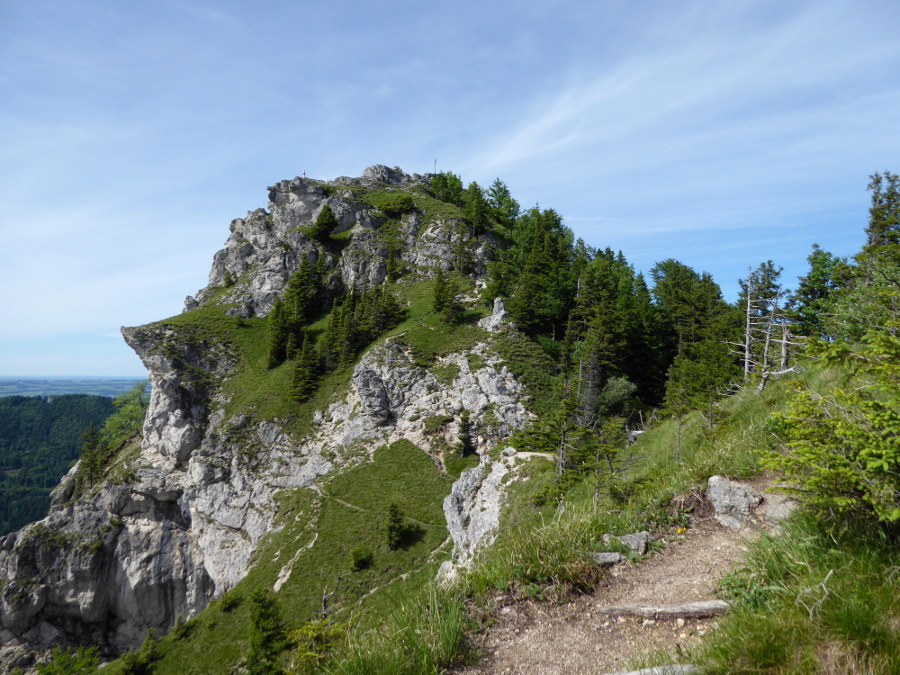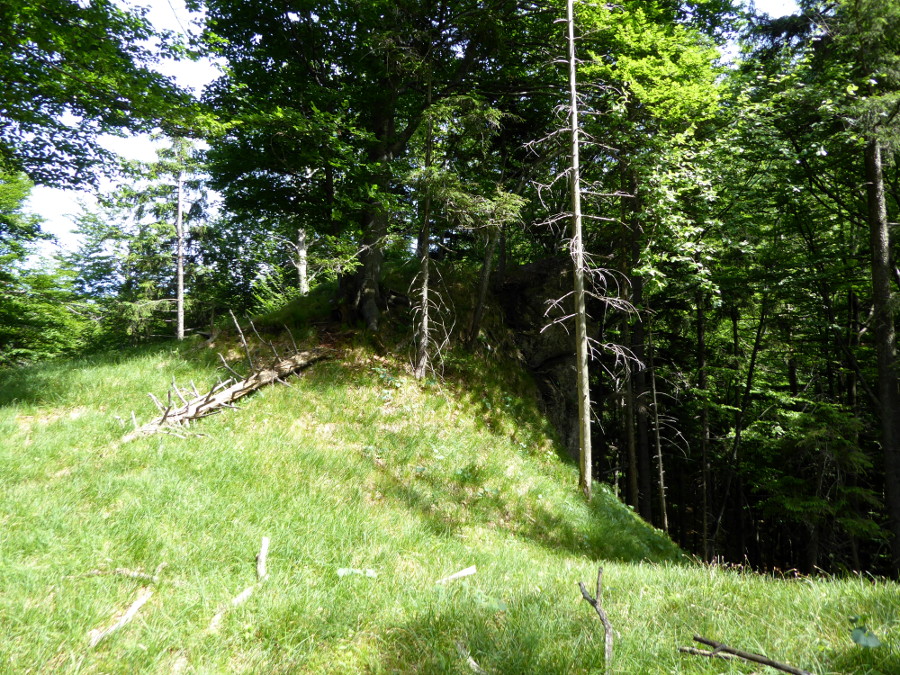 Zuerst befürchtete ich, dass der Anstieg links über den ausgesetzten Hang mit der Kletterpassage erfolgt, es gibt jedoch eine Umgehung rechts übers Gipfelwäldchen.