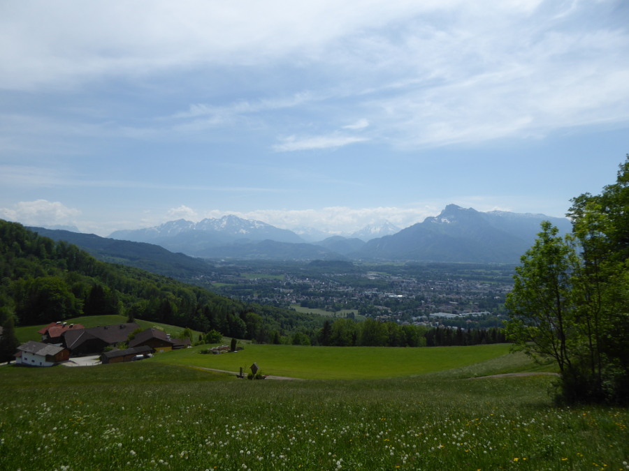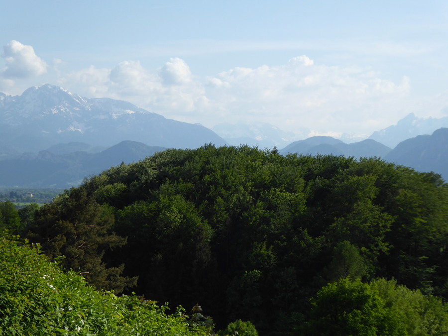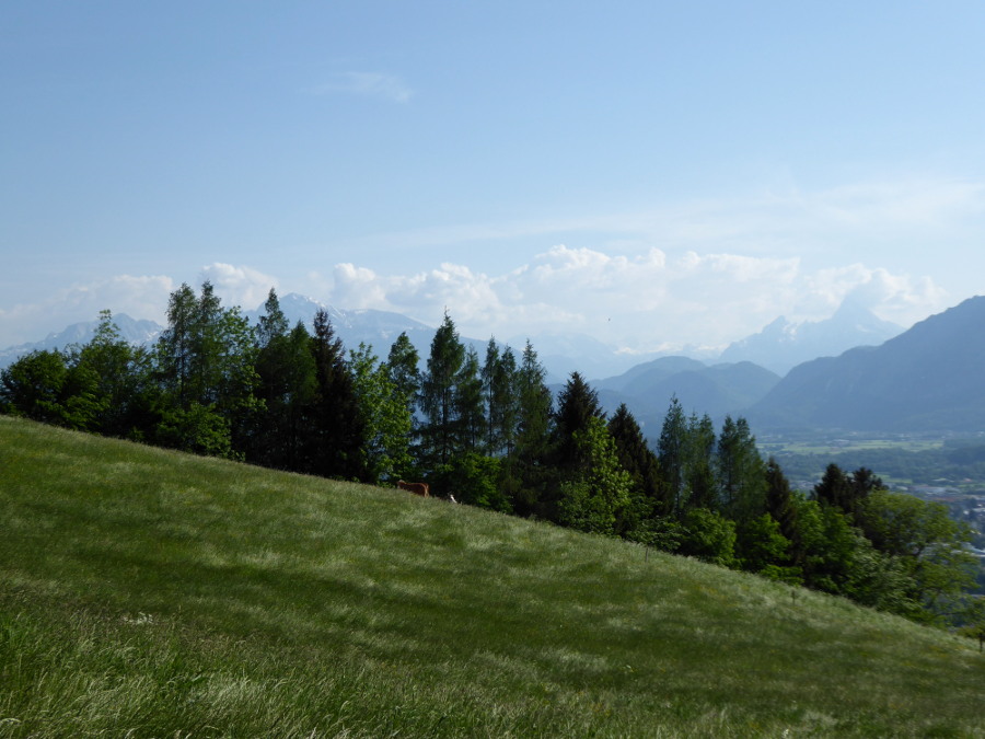 Bild 3: Blick übern Hiesl zu den immer schneebefreiteren Berchtesgadener Alpen.