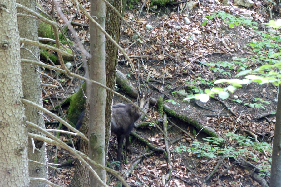 Bild 5: Überraschung des Tages: Eine Gams hüpft vor meinen Augen über den markierten Steig und bleibt kurz am gegenüberliegenden Hang stehen.