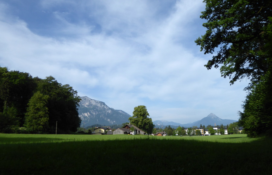 Manchmal kommt es anders als man denkt. Ein unverschiebbarer Routinetermin beim Arzt hat mir heute eine ambitioniertere Tour vermasselt. Ich kam erst nach 8 Uhr in Salzburg weg. Eigentlich wollte ich mit der Linie 150 nach St.Gilgen/Abersee und auf die Bleckwand wandern, doch fühlte sich die Luft schon in der Früh wie ein Backofen an und ich hätte erst um 10.15 am Ausgangsort starten können. Die Gewitter sollten sich ab rund 15.00, 16.00 Lokalzeit entwickeln. Kurz vor dem Wegfahren morgens fiel mir auf, dass in Verlängerung der Arztpraxis die Glasenbachklamm lag, also disponierte ich spontan um und konnte schon um 8.30 vom Kreisverkehr weggehen.
