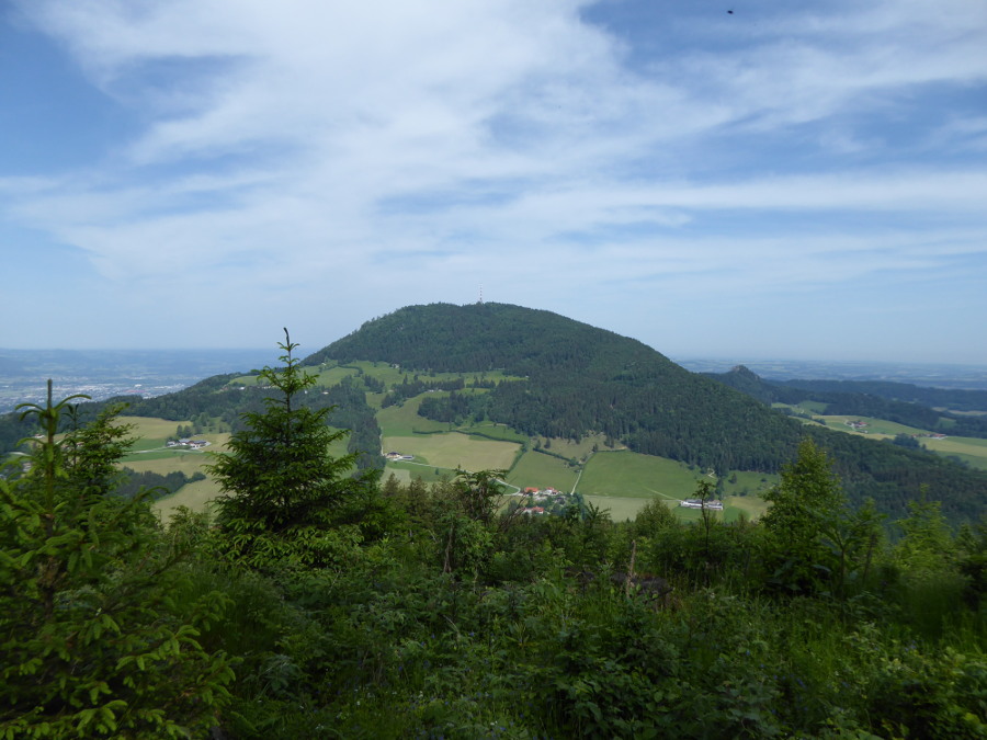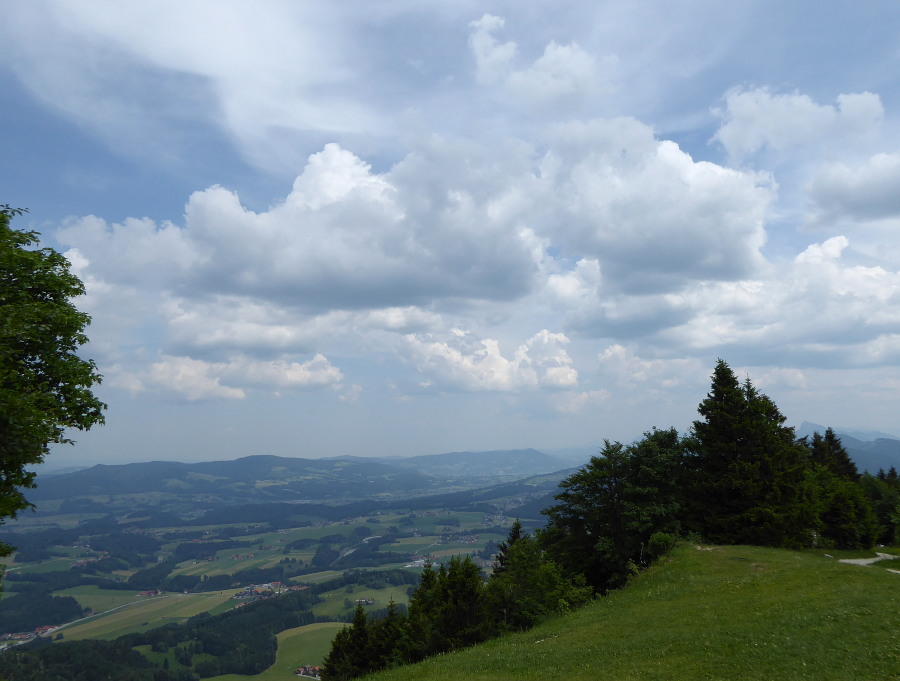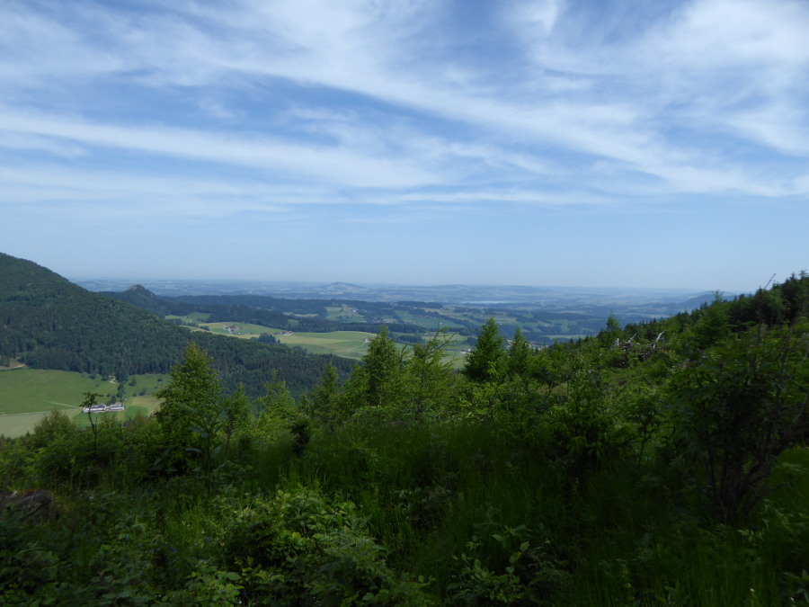 Bild 8: Blick in den Flachgau zu den Seen, dort überhaupt wolkenlos, wenn auch dunstig.