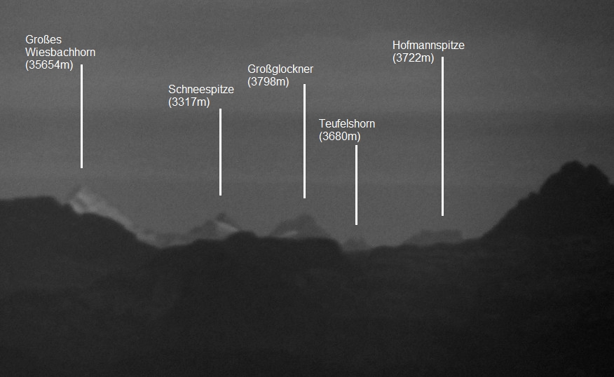 Bild 3: Und als Bonus war heute selbst mit bloßem Auge der Großglockner erkennbar (ca. 87km entfernt).