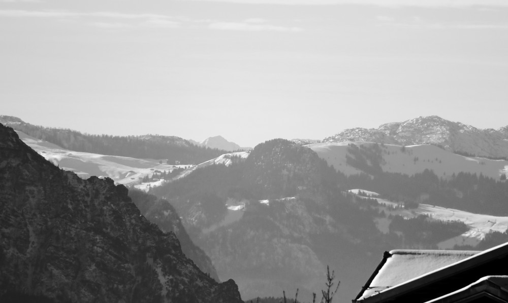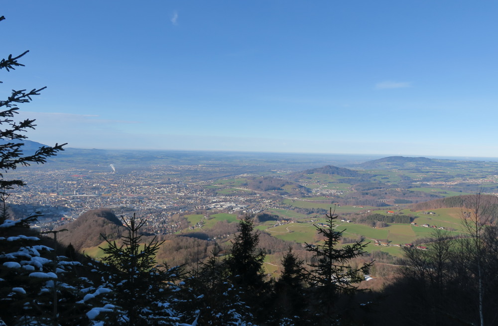 Bild 11: Blick nach Westen, links ein Ausläufer des Hochhorns (773m,27km), unten im Becken Teisendorf.