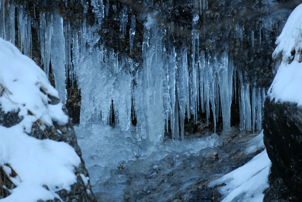 Bild 12: Mächtige Eiszapfen in den Gräben.