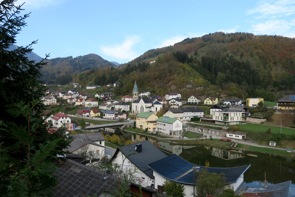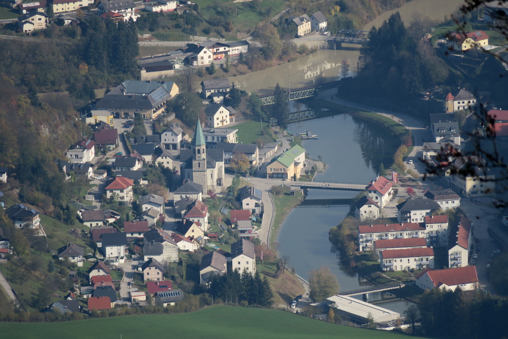 Bild 43: Losenstein, ganz unten der Bahnhof mit dem Gasthof Blasl dahinter, wo wir nochmal einkehrten.