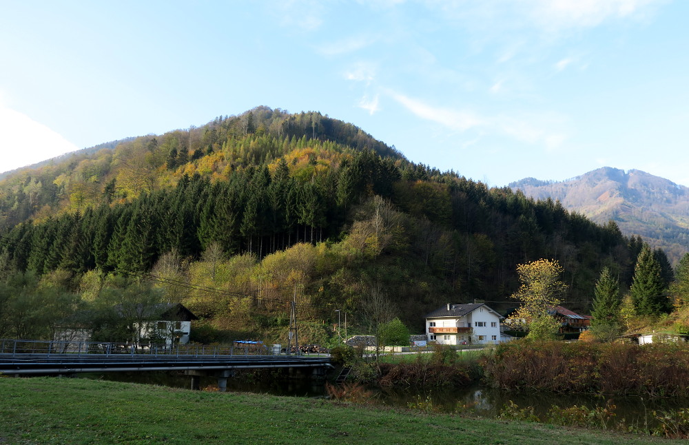 Bild 2: Unser Aufstiegskamm - der Steig beginnt in Bildmitte hinter der Brücke über die Reichraming.