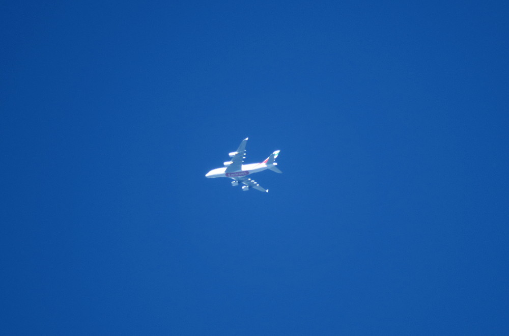 Dank 600mm Brennweite meiner G3 X bestätigte sich meine Vermutung: der A380 der FlyEmirates, das derzeit größte Passagierflugzeug.