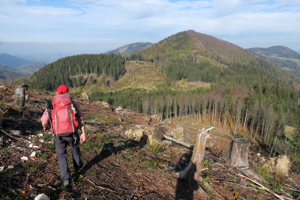 Der Jungwald im unteren Teil sowie hinter dem Fichtenwald war in den Vorjahren noch wesentlich dichter bewachsen und niedriger, und erschwerte das Vorankommen.