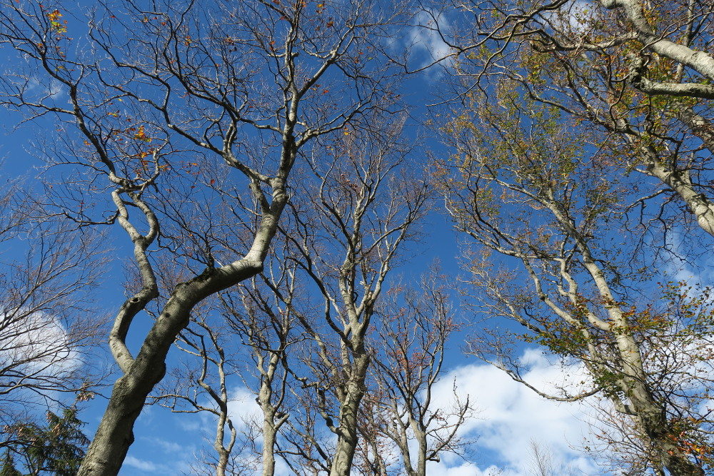 Weiter links hörte man Forstarbeiter die Sturmschäden beseitigen. Dort waren auch frischere entwurzelte Bäume sichtbar, eventuell hat Sturm FABIENNE vom 23. September 2018 hier etwas nachgeholfen.